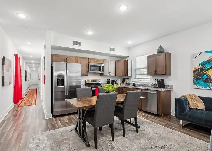 Cozinha totalmente equipada é fornecida nos quartos deste apartamento. O Chic 5Br Oasis In Nola'S Heart Apartamento de 139 m² está localizado a 15 minutos de carro do aeroporto New Orleans Lakefront.